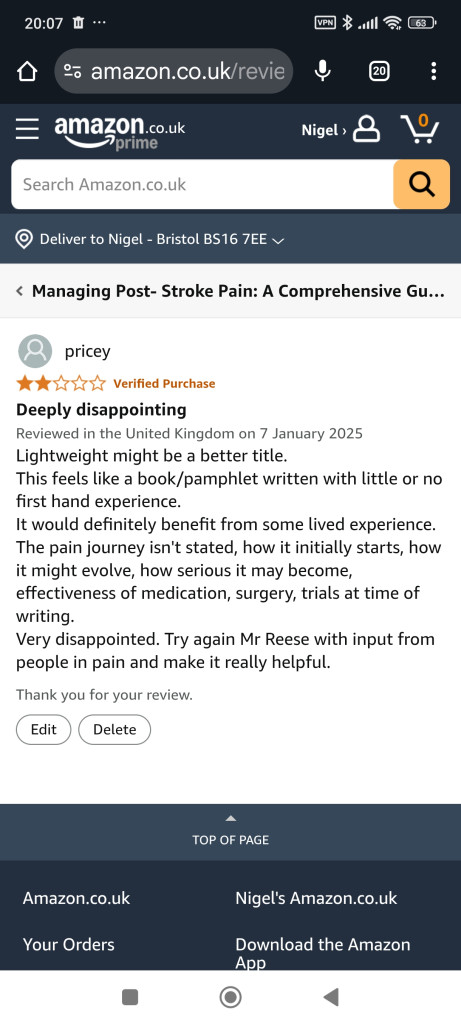You could flip this to be that the vision here is to be the best we can be for all the stroke survivors out there ? And to achieve that, if one person can use a title which no one would object to ? Price worth paying ?